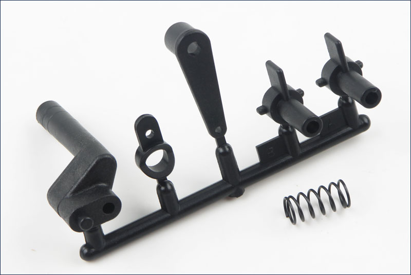 Protector Set - Стойка крепления глушителя, качалки механизма защиты переключения передачи ( установлен на сервомашинке ), пружинка для автомодели Kyosho MFR.