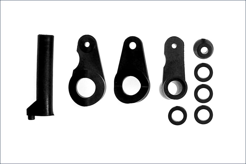 Качалки сервосейвера, левая качалка рулевого механизма, втулки для автомоделей 10го масштаба Kyosho серии FW-05T+, FW-06 и их модификаций.