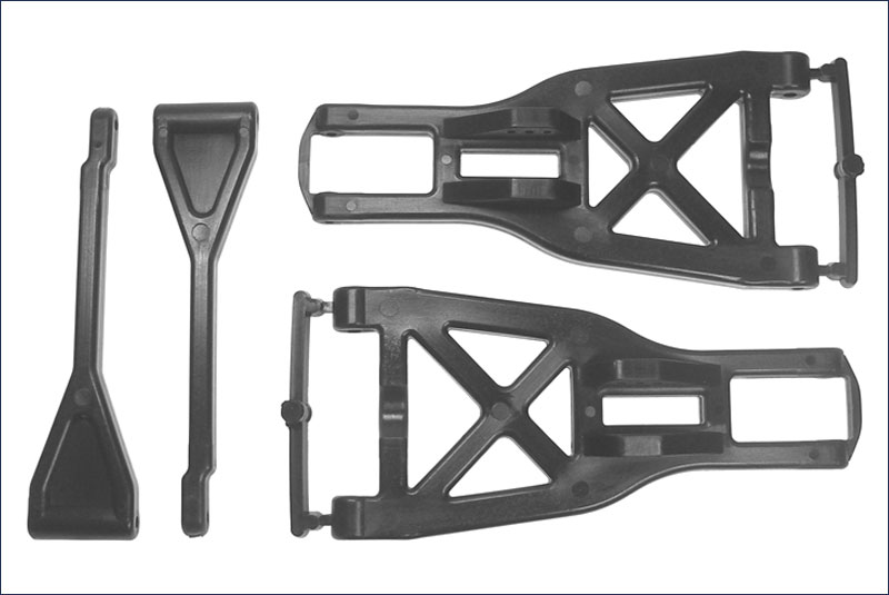 Комплект пластиковых рычагов подвески для автомодели Kyosho серии Giga Crucher. В комплекте: 2 верхних рычага подвески, два нижних рычага подвески.