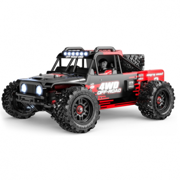 Полный привод 4WD в связке с бесколлекторным мотором типа 2852 позволяет внедорожнику уверенно преодолевать препятствия, а влагозащищенный регулятор ESC на 45А гарантирует стабильную работу электроники. Входящий в комплект литий-ионный аккумулятор 7.4V емкостью 3000 mAh наделяет машину внушительной мощностью для достижения скорости 43 км/ч. Управление осуществляется через помехоустойчивую аппаратуру 2.4GHz на дистанции до 120 метров, а интегрированная в передний бампер LED-подсветка делает заезды в темное время суток яркими и безопасными.