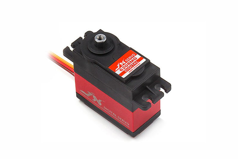 Цифровая сервомашинка стандартного размера с металлическим редуктором. Оснащена электродвигателем без сердечника. Корпус выполнен из металла и пластика.