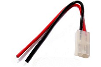 С одной стороны кабеля припаян разъем типа Мини-Тамия, корпус которого с наружными размерами 23х10.5х5.5 оснащен надежной защелкой, предотвращающей самопроизвольное размыкание, и исключает возможность неправильного подключения к батарее.
