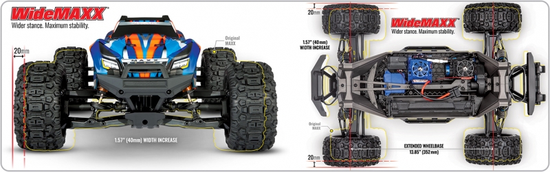 Traxxas X-Maxx навсегда изменил облик радиоуправляемых монстров. Его новый дизайн, массивные размеры, невероятная сила и непревзойденная мощь превратили X-Maxx в легенду. Ничего подобного еще небыло ... до сих пор! Встречайте абсолютно новый TRAXXAS Maxx Wide™. Новый TRAXXAS Maxx Wide™ собрал в себя самое лучшее от X-Maxx, и превратился в более легкого, более компактного, более свирепого зверя, который готов поднять скорость и силу на новый уровень! Теперь он длиннее и шире, а значит более управляемый! Встречайте новый TRAXXAS Maxx Wide™