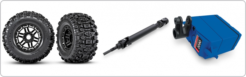 Шины Traxxas Maxx отличаются от других уникальным рисунком протектора и несколькими слоями, которые обеспечивают надежное сцепление с любой поверхностью.2,8 дюймовые колеса и сверхпрочная резина разработана специально для того, чтобы противостоять разрыву на больших мощностях,а 17 миллиметровый хекс позволяет прочно закрепить колеса на модели! Экстремальная мощь требует экстремальных решений - на модель установлены специальные усиленные привода, способные выдержать крутящий момент обновленной силовой системы, а также увеличить ход подвески и угол поворота колес.Cервомашинка создана специально для Traxxas X-MAXX, но инженеры решили: такая мощь должна быть и тут!