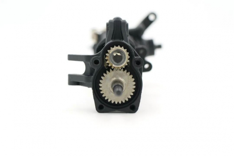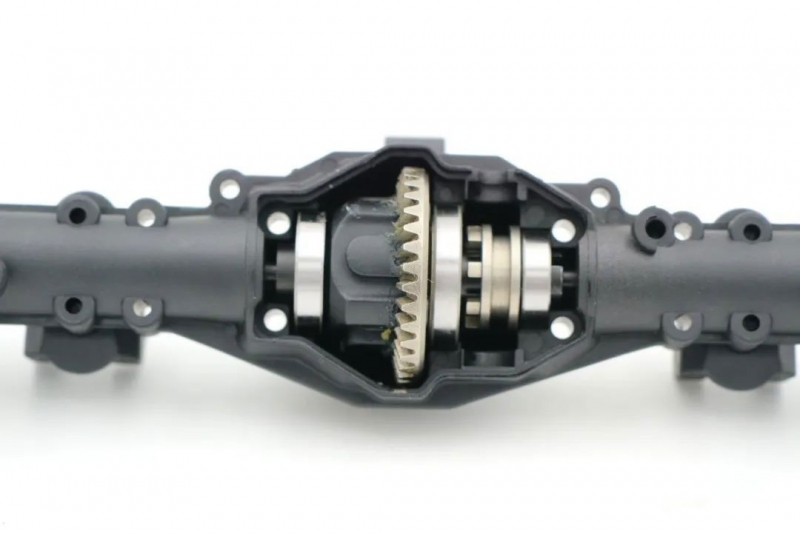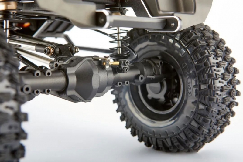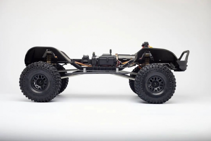 Улучшения коснулись трансмиссии и компоновки модулей на шасси! Трансмиссия была глобально переделана: был изменён корпус, и передаточное соотношение. Благодаря новому компактному корпусу, получилось сдвинуть трансмиссию вперёд на 32 мм и опустить на 13,5 мм, теперь она находится внутри рамы. Из-за смешения трансмиссии получилось сместить крепление аккумулятора в центр модели на 70,5 мм. Новая компоновка обеспечила более правильную развесовку и низкий центр тяжести, что непременно отразилось на управлении. Модель стала более устойчивой, стало проще преодолевать подъёмы и спуски. Новые обновлённые мосты отличаются от предыдущей версии, т.к. теперь карданные валы вращаются в разные стороны, и модель престала раскачиваться при торможении и разгоне. Обновлённая трансмиссия имеет улучшенную мотораму, из-за чего увеличилось количество подходящих ведущих шестерней. Теперь можно устанавливать пиньоны с 11Т до 18Т.