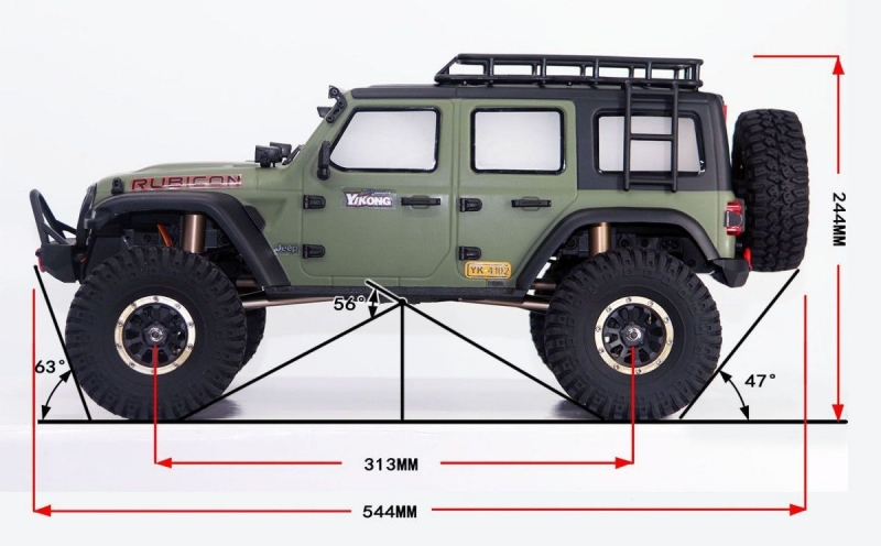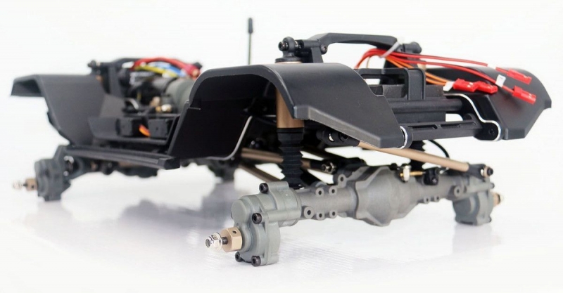 Главное преимущество моделей Yikong относительно остальных моделей масштаба 1:10 - портальные мосты подключаемыми блокировками дифференциалов. Портальный мост позволяет значительно увеличить клиренс без увеличения размеров покрышек за счет подъема самого моста относительно оси колеса.