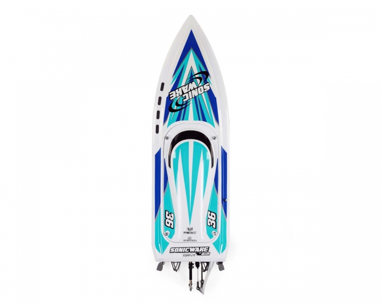 Радиоуправляемый катер ProBoat Sonicwake 36" v2 6S Brushless Deep-V RTR c функцией автопереворота (цвет белый с синим)