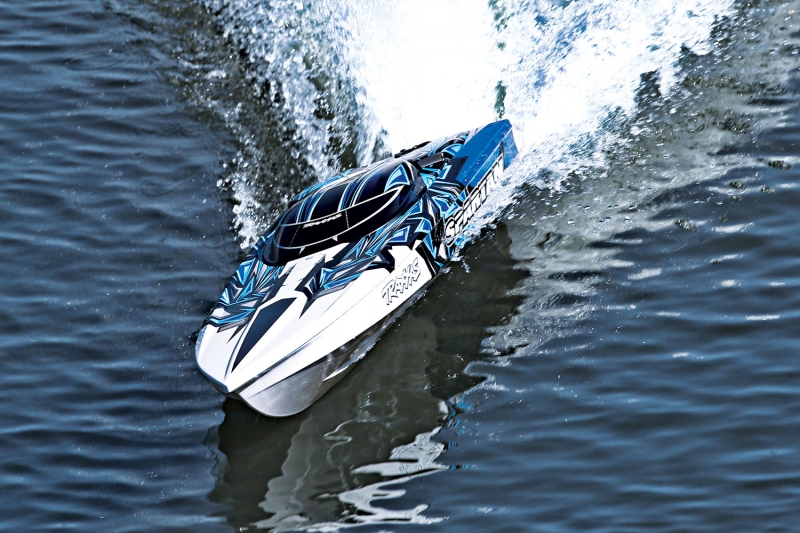 Кратко о бесколлекторном катере Traxxas Spartan™: |