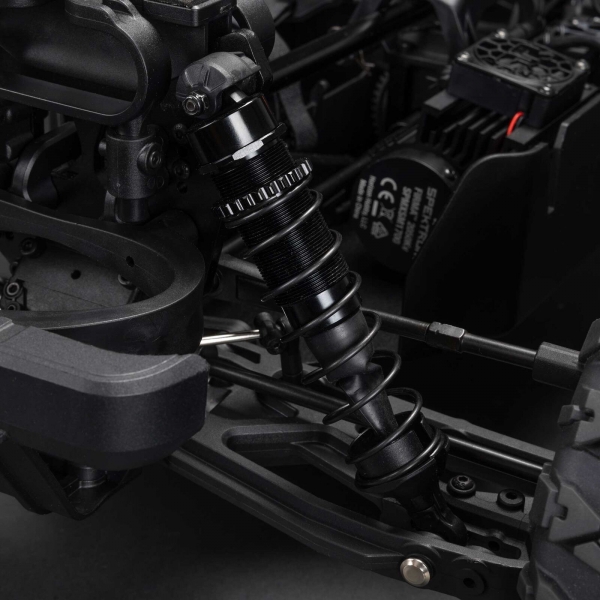 Регулируемые, маслонаполненные амортизаторы имеют черные анодированные алюминиевые корпуса и установлены на черных анодированных алюминиевых передних и задних стойках амортизаторов. Амортизаторы надежно удерживают шины для высокого сцепления и обеспечивают плавный ход по бездорожью.