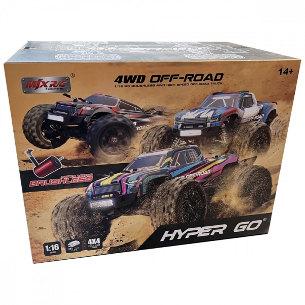 Радиоуправляемый монстр MJX Hyper Go 4WD Brushless 1:16 - MJX-16209 - это новая модель с бесколлекторным двигателем от популярного производителя MJX. Автомобиль выполнен в масштабе 1:16 и отличается от конкурентов наличием интеллектуальной аккумуляторной батареи, системой охлаждения двигателя, а также оптимальным соотношением цены и качества деталей.