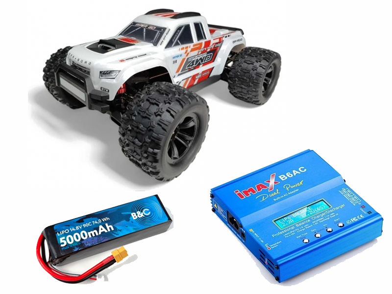 Радиоуправляемый монстр MJX Hyper Go Brushless 4WD 2.4G LED 1:10 (цвет белый) c зарядным устройством и АКБ Li-Po 4S 5000mAh MJX-10208-V1-WHITE-COMBO