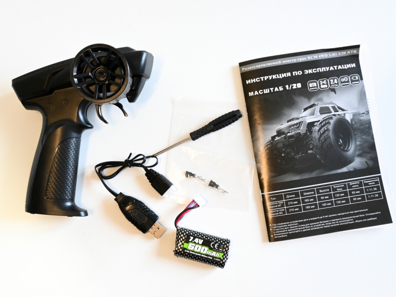- аккумулятор: 7,4V 600mAh (не использовать 3S!);