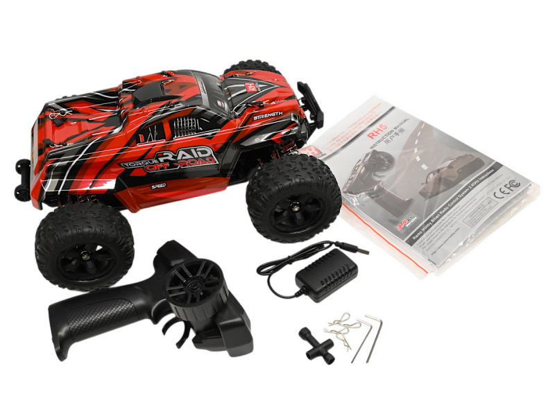 Полный привод повышает проходимость и управляемость модели. На монстр траке установлены коллекторный двигатель 390 класса и влагозащищенный приемник 3 в 1. Мощный аккумулятор Li-Ion 7.4V 1800mah, идущий в комплекте, обеспечивает большую мощность и время непрерывной работы 15-20 минут. Пульт управления на частоте 2.4Ghz позволит управлять моделью на расстоянии до 150 метров.
