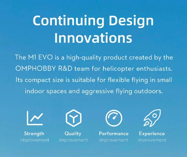 OMP M1 EVO - это высококачественный продукт, разработанный компанией OMPHOBBY для любителей вертолетов. Его компактные размеры позволяют использовать его как в помещении, так и на открытом воздухе. Высокоэффективный 3D-вертолет с прямым приводом и двумя бесщеточными двигателями. Обновленный OMP M1 EVO имеет новый внешний вид и алюминиево-карбоновую основную раму!
