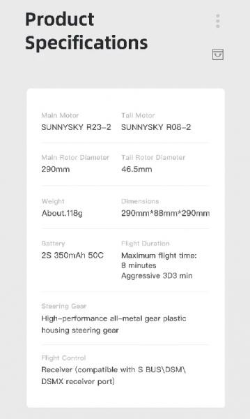 - контроллер полета имеет несколько режимом полета: полет со стабилизацией положения и спортивный 3D для фигур высшего пилотажа.