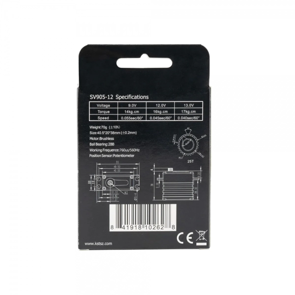 Сервопривод цифровой KST SV905-12 HV бесколлекторный, с металлическим редуктором, 17кг/см., 0.04 сек. (хвостовой для вертолетов 550-700 класса)