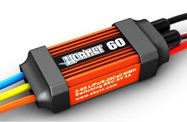 Регулятор оборотов бесколлекторный для моделей самолетов и вертолетов. Имеет функции плавного старта для использования на вертолетах. Программирование осуществляется с помощью стика газа, т.е. вам не понадобятся никакие дополнительные устройства и настройку можно проводить прямо в поле. Оснащен встроенным преобразователем напряжения.