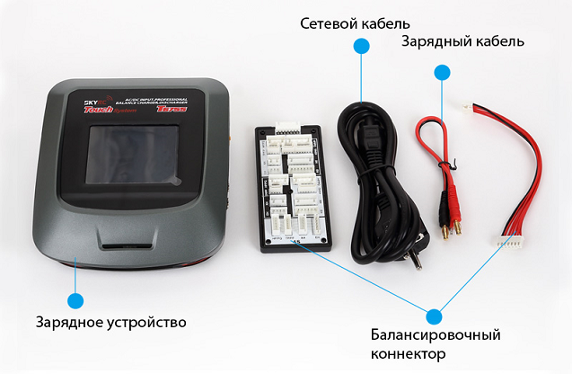 Артикул: SK-100105PC520 ChagerПрофессиональное зарядное устройство со встроенным блоком питания для работы от сети переменного напряжения 220В. Поддерживает LiPo аккумуляторы 22.2 В 6S. Максимальный ток заряда 20А.