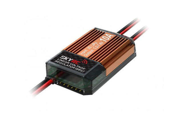 Преобразователь напряжения. Позволяет запитать вашу бортовую электронику регулируемым напряжением 5.2-7.4 В. Имеется сигнализатор низкого напряжения, предупреждающий переразряд батареи. Для удобства использования на модели возможно подключение внешнего выключателя со светодиодным индикатором включения и низкого напряжения АКБ.