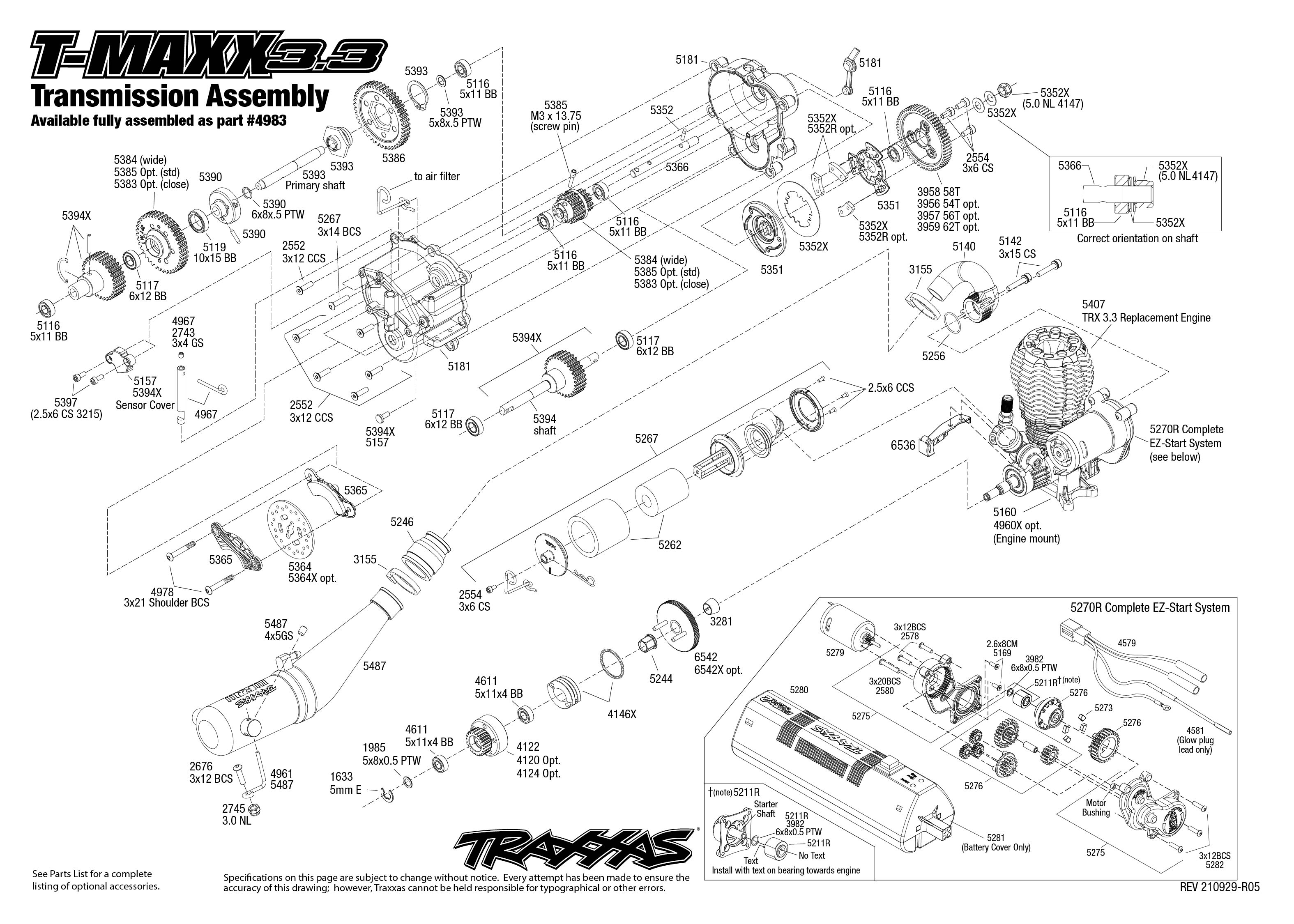 На модели установлен мощнейший двигатель внутреннего сгорания TRX 3.3! Когда дело доходит до мощности, высоких оборотов и надежности, ни один другой двигатель не может сравниться с TRX 3.3. Все детали двигателя выполнены с прецизионной точностью и только из качественных материалов, что обеспечивает большой ресурс. Композитный карбюратор не нагревается в процессе работы двигателя и обеспечивает постоянство качества смеси, кроме того он очень прост в настройке. Но, как мы знаем, ничто не вечно, и здесь Traxxas не оставят нас в беде - для данного двигателя доступны все без исключения запчасти, включая поршневую пару, подшипники, коленчатый вал и прочее.