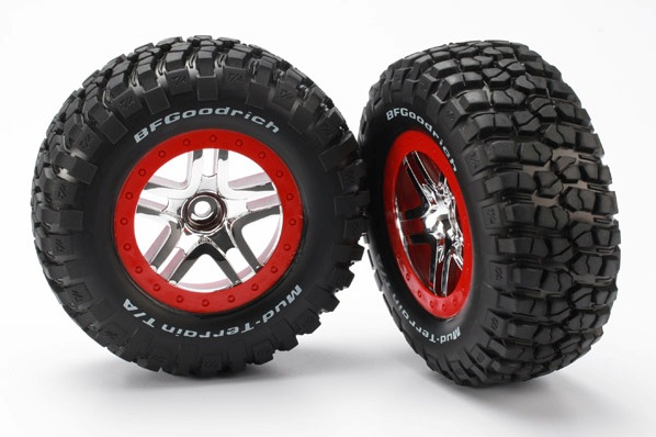 Traxxas Колеса передние в сборе для заднеприводных автомоделей, chrome/red, 2 шт.