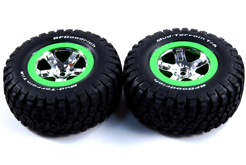Traxxas Колеса в сборе для полнопривод. зад/перед, для заднепривод. зад, chrome/green, 2шт.