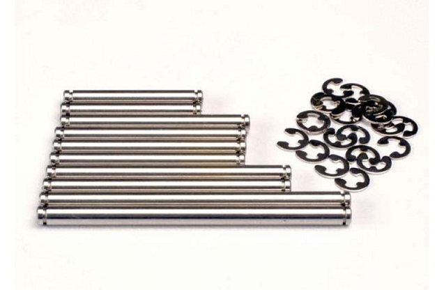 Suspension pin set, stainless steel (w/ E-clips) Комплект осей рычагов (сталь) с Е-образными стопорными кольцами 10шт. Подходит для автомоделей Traxxas: Nitro Rustler, Nitro Sport, Nitro Stampede.