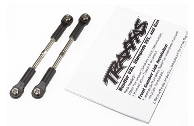 Регулируемая тяга c шаровыми наконечниками, 4 наконечника, 2 тяги 3х55мм (75мм от центра до центра) для автомоделей Traxxas серии BANDIT VXL. Опция для автомоделей Traxxas серии SLASH 4X4, BANDIT.