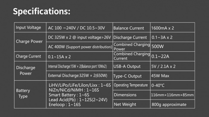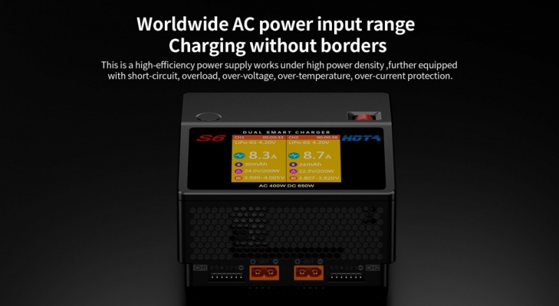 Зарядное устройство двухканальное Hota S6 AC 400W DC 325Wх2 15Aх2