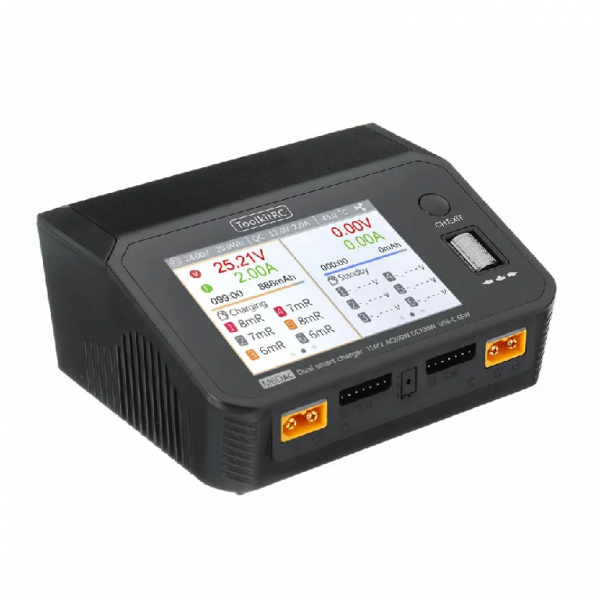 Артикул: TK10800Зарядное устройство двухканальное ToolkitRC M6D (цвет черный)Зарядное устройство двухканальное ToolkitRC M6D (цвет черный)