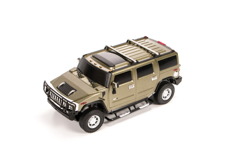 Радиоуправляемая модель автомобиля Hummer H2 в масштабе 1:24. Автомобиль может двигаться в любых направлениях, а его кузов выполнен в точном соответствии с прототипом.