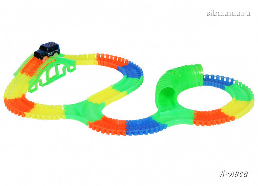 Хотите устроить гонки по ночному городу? Выключайте свет! При производстве элементов трассы в состав добавляют порошок люминифор. Поэтому за день детали набрав солнечного света, ночью трасса Magic Tracks светится в темноте. За счет этого играть можно вечером и даже ночью! Благодаря светодиодным фарам машинки превращаются в настоящее шоу, наполняя комнату великолепными, сказочными, яркими огнями и создавая незабываемую атмосферу азарта и радости!