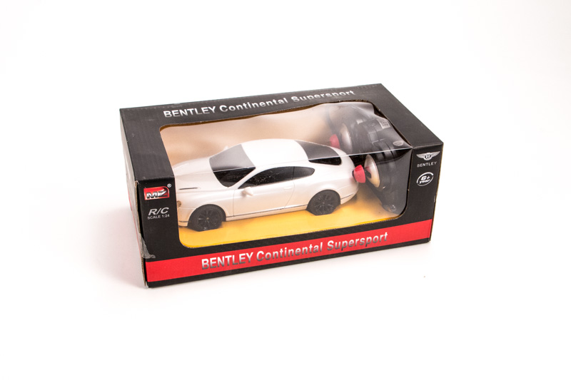 Радиоуправляемая модель автомобиля Bentley Continental в масштабе 1:24. Автомобиль может двигаться в любых направлениях, а его кузов выполнен в точном соответствии с прототипом.