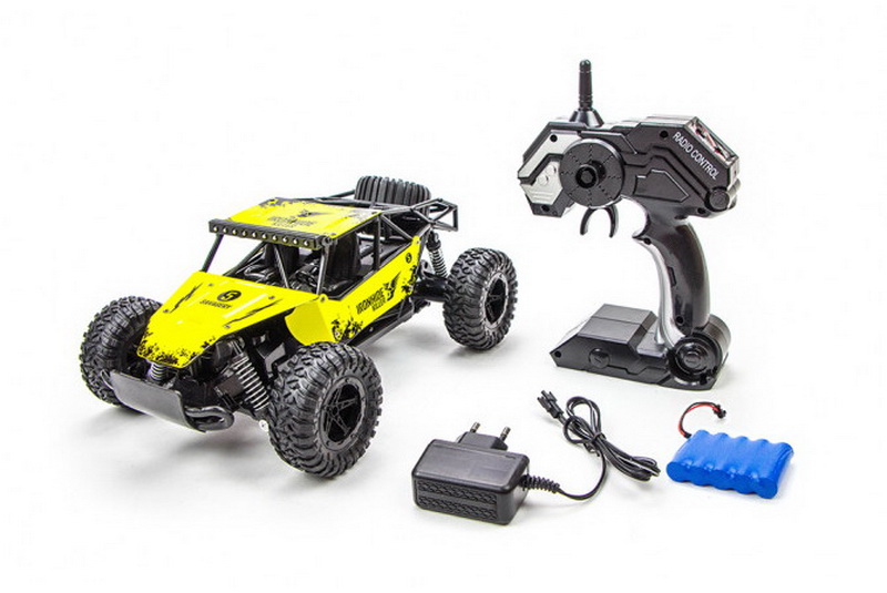 Радиоуправляемый внедорожник Ironhide в масштабе 1/16 оснащен надежным электромотором, пружинной подвеской колес и металлическим кузовом.