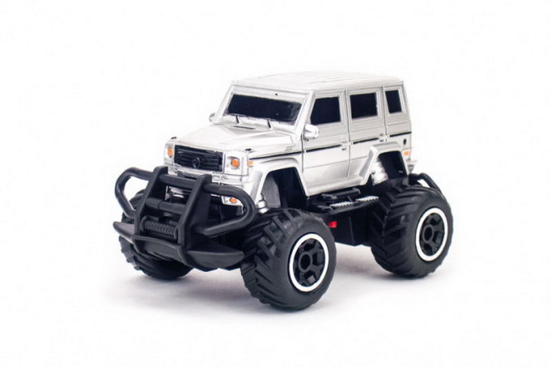 Радиоуправляемая машина серии «Minicrossi Car» в масштабе 1/43 оснащена коллекторным двигателем, пружинными амортизаторами, подсветкой и большими колесами.