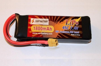 Аккумулятор для самолета VANT Li-pol 1800mAh, 45c, 2s1p, XT60/EC3/Deans