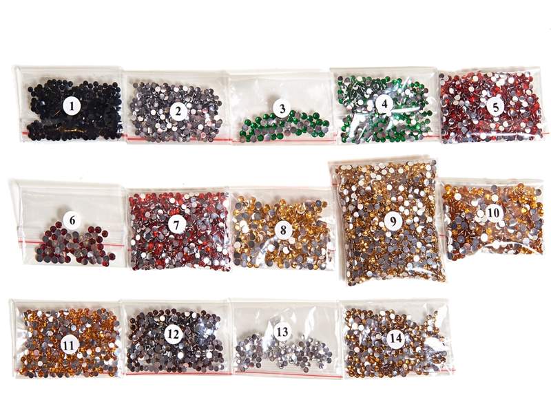 комплект разноцветных блестящих страз диаметром 3-6 мм