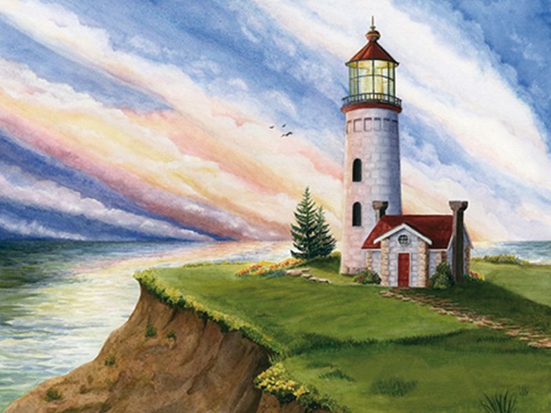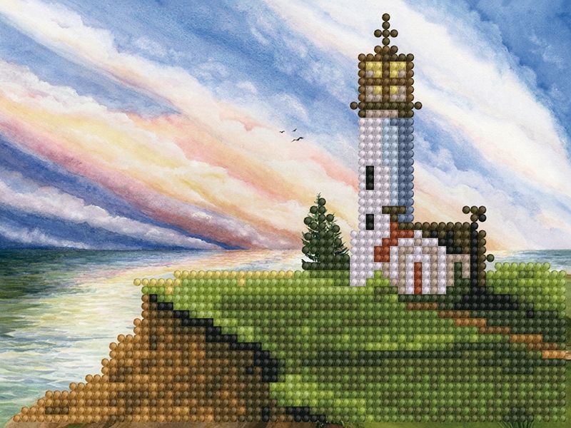 В наборе Маяк на рассвете из мозаичных элементов можно выложить самый древний действующий маяк в мире на севере Испании. Башня на берегу Атлантического океана построена в начале второго века нашей эры. При этом выкладывать нужно не полностью весь холст, как в случае с полной выкладкой, а только его часть.