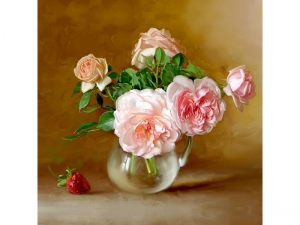 Алмазная мозаика 30х30 БУЗИН. ПИОНЫ В КИТАЙСКОЙ ФАРФОРОВОЙ ВАЗОЧКЕ (26 цветов)