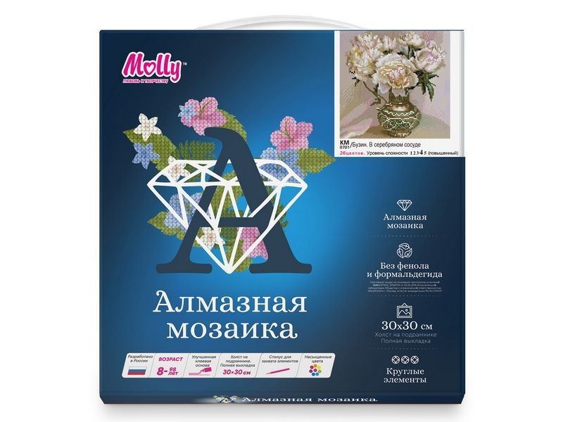 Алмазная мозаика - наборы, в которых желаемое изображение выкладывается на основе со схемой рисунка при помощи специальных декоративных элементов. Подсказка в виде нанесенного контура существенно облегчает задачу и дает возможность создавать картину даже людям, не имеющим художественных навыков. Готовая картина переливается на свету всеми цветами радуги. К тому же, принцип рисования по номерам, заложенный в основу создания алмазной мозаики, делает такое творчество доступным каждому и исключает неудачи.