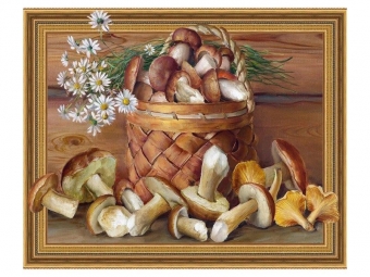 Алмазная мозаика 3D с нанесенной рамкой 40х50 БУЗИН. НАТЮРМОРТ С ГРИБАМИ ( 30 цветов)