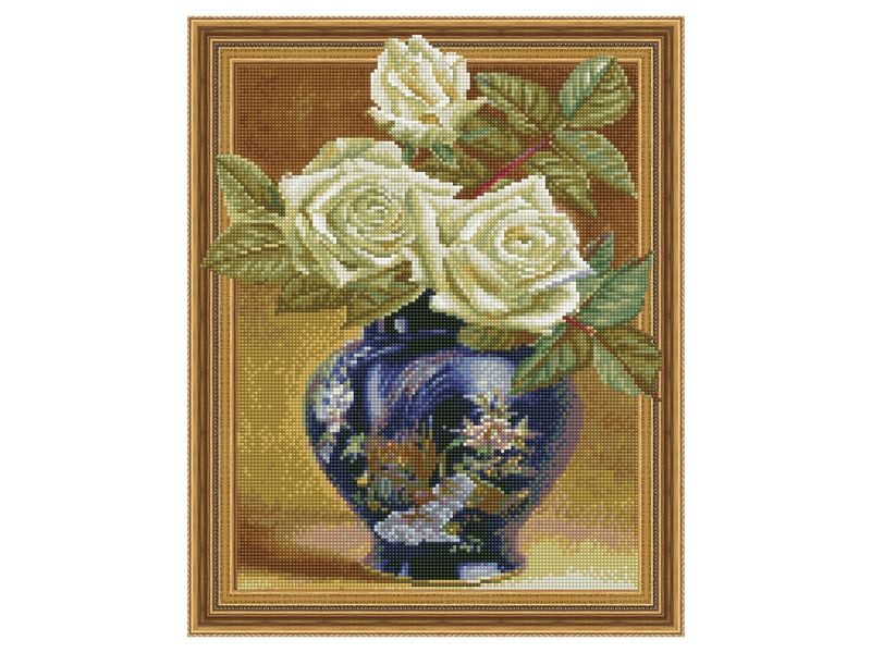 Алмазная мозаика 3D с нанесенной рамкой 40х50 БУЗИН. РОЗЫ В ВОСТОЧНОЙ ВАЗЕ (30 цветов)