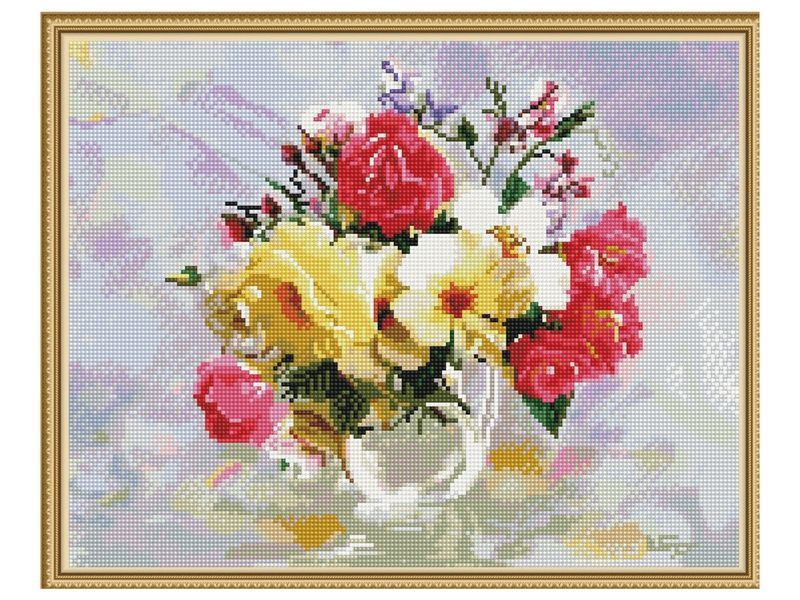 Алмазная мозаика с нанесенной рамкой 40х50 БУЗИН. РОЗЫ В КУВШИНЧИКЕ (36 цветов)