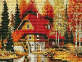В наборе "Водяная мельница" из мозаичных элементов можно выложить водяную мельницу в осеннем лесу. Еще в глубокой древности на Руси использовалась энергия воды для приведения в движение механизма мельницы. Для северных земель характерны мельницы из дерева, в европейской части России мельницы строили, как правило, из камня или кирпича, что свидетельствовало о состоятельности их владельца.