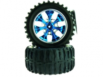 Колеса в сборе (шины 08009N + диск 08044PB голубой хром) для монстров Himoto масштаба 1/10, 2шт.