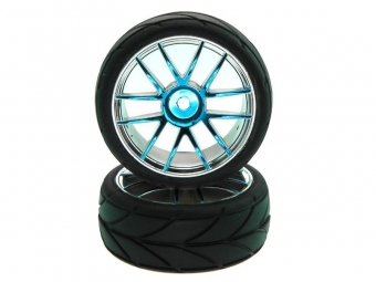 Колеса в сборе (шины Himoto 02019 + диск 02018PB) для дрифта для радиоуправляемых шоссе Himoto Hi5101BL масштаба 1/10 и аналогичных. цвет диска: синий хром количество спиц: 12 спиц два колеса в сборе