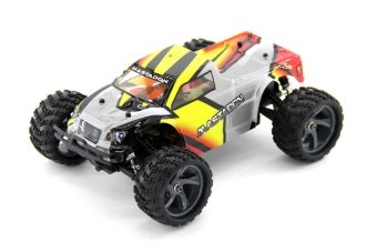 Mastadon Truck оснащается радиоаппаратурой 2,4 ГГц, мощным коллекторным электромотором серии 370, электронным регулятором скорости выдерживающим пиковый ток 120А, а также Ni-MH аккумулятором 7.2В 800мАч, так что пикап Mastadon полностью готов к запуску, потребуется всего лишь приобрести батарейки АА для передатчика. Компактное шасси монстра Mastadon великолепно справляется с бездорожьем и столкновениями с другими машинами, так что вы можете с друзьями превратить свой двор в арену для развлечений!
