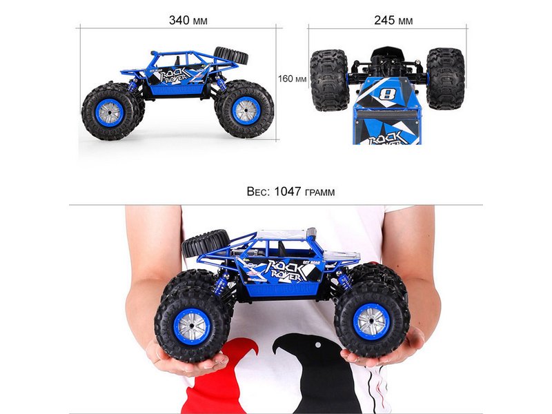 Железная кабина не боится падений и столкновений. Влагозащита обеспечивает сохранность электронной начинки при использовании в условиях водоема или грязи. Маневренность и уверенность движения обеспечивается амортизацией на каждом колесе. Большие колеса и глубокий рисунок протектора обеспечивают надежное сцепление с любой поверхностью. Полный привод и независимая подвеска. Скорость до 12 км в час. масштаб: 1/12 размер: 35 х 25 х 16 см аккумулятор: Ni-Cd 7.2V 700 mAh влагозащищенность: есть тип двигателя: коллекторный электродвигатель максимальная скорость модели: 12 км/час цвета: красный, синий краулер пульт управления аккумулятор зарядное устройство 3 батарейки типа АА для пульта управления