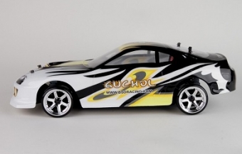Радиоуправляемая дрифтовая модель с ременной передачей, коллекторным мотором и аппаратурой 2,4 ГГц. Шасси выполнено из пластика.