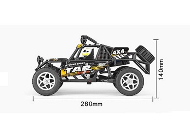 Полноприводная радиоуправляемая машина Wltoys багги 18428 Dune racer в масштабе 1/18 оснащена коллекторным двигателем серии 370 и легко разгоняется до скорости 40 км/ч! Эта миниатюрная модель создана для гонок по бездорожью. Кузов машины имеет прочный пластиковый каркас и фигурку водителя в шлеме. Независимая подвеска на двойных поперечных рычагах спереди и прочный задний мост сзади. Маслонаполненные пружинные амортизаторы великолепно сглаживают неровности трассы. Резиновые колеса с внедорожным протектором гарантируют отличную проходимость на любом бездорожье.